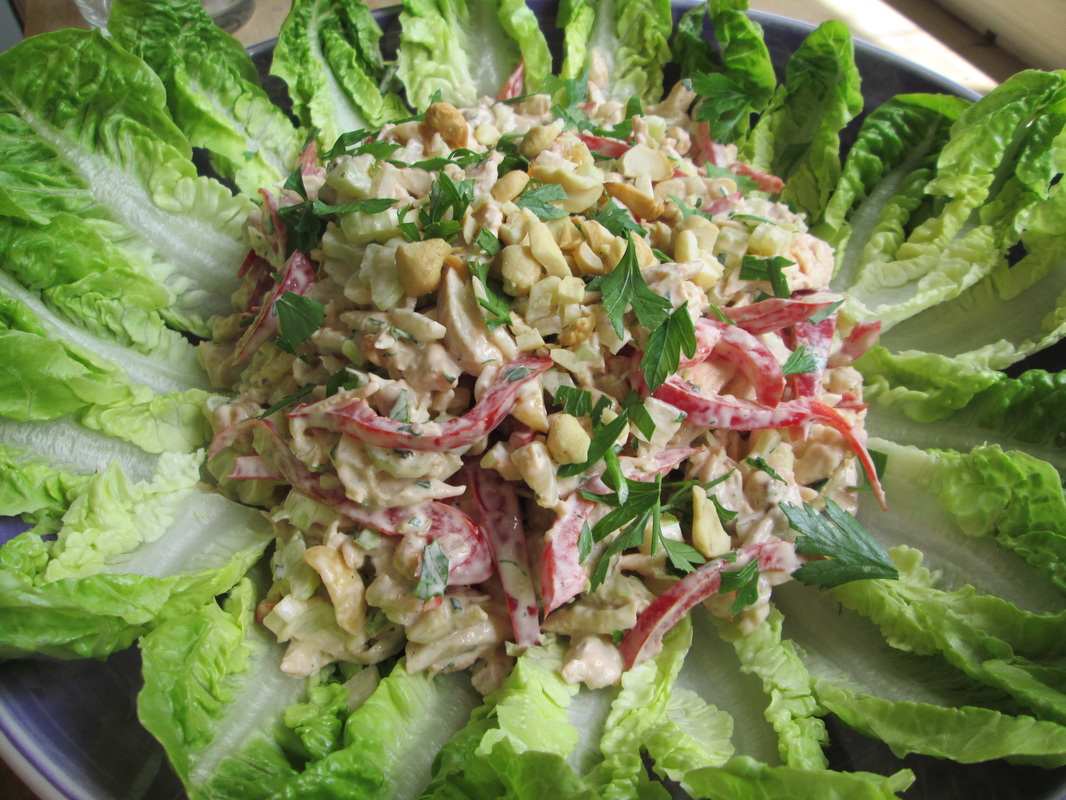 Not a summer goes by and I don’t make this salad at least once. I love it! Usually, I am not overly keen on creamy salads but I do love this chicken salad. I think I have been making variations of it for years and years now and each time it seems to change. I have a recipe for a Roasted Chicken Salad that’s served with salad leave cups and it’s fantastic! This time, I took a few extra minutes to make sure to write it all down to share.